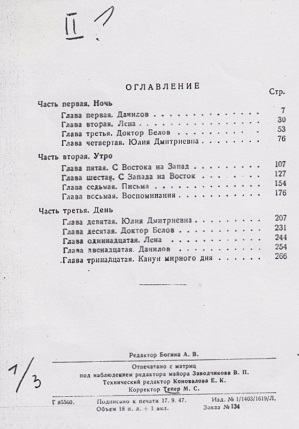| Оглавление романа «Спутники» с пометками вождя | Вера Панова |