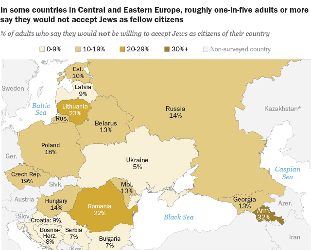 Конечно, налицо достаточно высокий уровень нетерпимости к евреям в самой секулярной стране Европы — Чехии — но это, скорее, исключение из правила.