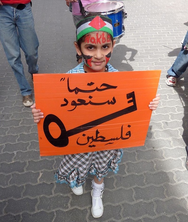 Демонстрация в день Накбы, на плакате: «Мы обязательно вернемся, Палестина»